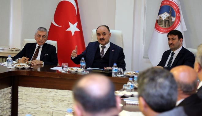 Yatırım İzleme ve Koordinasyon Başkanlığı toplantı salonunda gerçekleşen toplantıya, Vali Yardımcıları Ali Uslanmaz, Mustafa Çek, Talas Kaymakamı Zekeriya Güney, kamu kurum ve kuruluşlarının bölge ve il müdürleri katıldı.