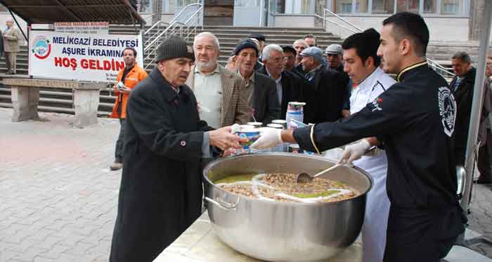 Melikgazi Belediyesi tarafından geleneksel hale getirilen Mübarek Muharrem ayı dolayısıyla Pazartesi günü Bel-Sin Bölgesinde, Salı günü Mimsin Bölgesinde bugün ise İLDEM Bölgesinde dağıtılan 3000 kişilik Aşure ile devam etti. Aşure ikramına vatandaşların