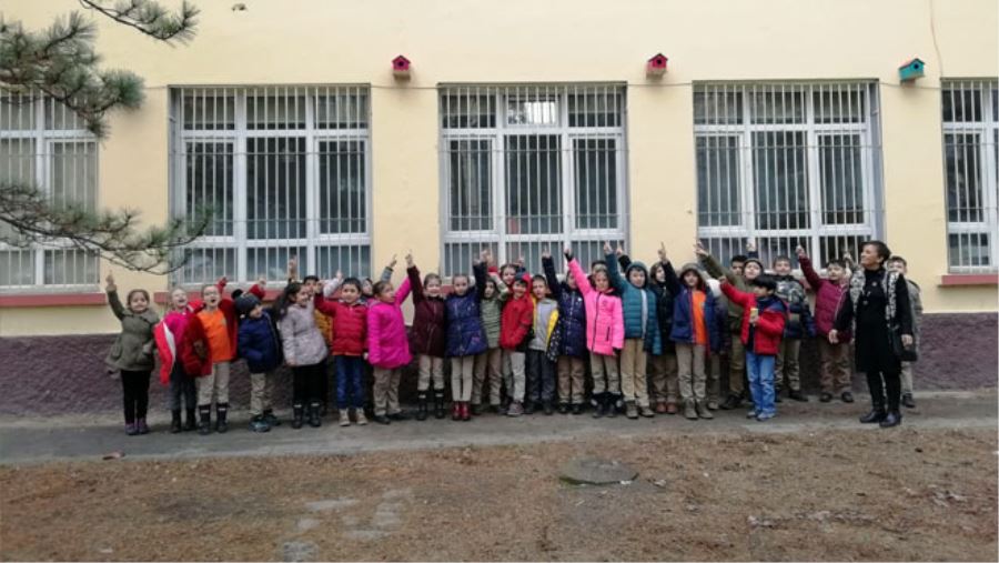 Kayseri’de bir ilkokulun 2. sınıfa giden öğrencileri, kışın dışarıda olan kuşlar için okul bahçesine kuş yuvaları yaptı.