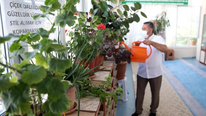 "Niye bizim camimizde çiçekler olmasın diye düşündük. Hani güzel bir yere girilince 'cennet bahçesi' ifadesi kullanılır, ben de camimize giren cemaati cennet bahçesine girmiş gibi çiçeklerle karşılamak istedim. Yaklaşık 135 çiçek var camide. Bunları satın alarak değil, kendi imkanlarımızla fideleyerek çoğalttık. En sevindirici yanı da mahallenin kadınları camideki çiçeklerimiz sayesinde çiçek sevgisi kazandı. Camiden gelerek çiçek fidesi alıyorlar. Evlerde çiçek sevgisi yaygınlaştı, bu da hoşumuza gidiyor."