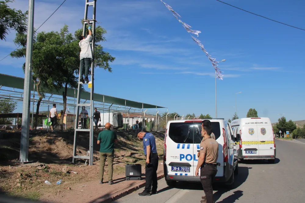 Talas ilçesinde bunalıma girerek kendini elektrik direğine asan kişi kasaplarca kurtarıldı.