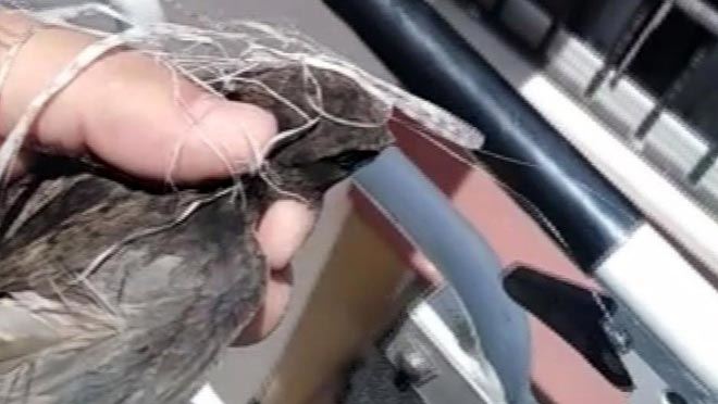 Ekiplerin dikkatli çalışmaları ile kırlangıç sıkıştığı su oluğunun içerisinden çıkarıldı. Daha sonra kanatlarındaki ipler temizlenen kırlangıç doğaya salındı.