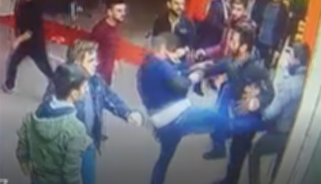 Kayseri´de bir iş yerinde dükkan sahibi ile kurye arasında çıkan kavga güvenlik kamerasına yansıdı.