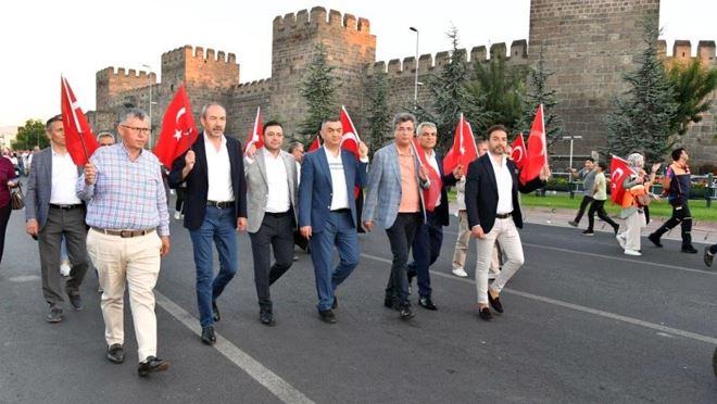 Kayseri Organize Sanayi Bölgesi Yönetim Kurulu Başkanı Mehmet Yalçın; yürüyüşe sanayi ve ticaret odaları başkanları ile birlikte katıldı. Kayseri OSB’nin Cumhuriyet Meydanı’nda kurmuş olduğu çadıra da büyük ilgi gösterildi. Törene Başkan Yalçın’ın yanı sıra Kayseri OSB yönetim kurulu üyeleri de katıldı. 15 Temmuz Demokrasi ve Milli Birlik Günü etkinlikleri çerçevesinde Kartal Şehitliği’nden Cumhuriyet Meydanı’na 'Türkiye Aşkına Demokrasi Yürüyüşü' yapıldı. Yürüyüşe, Kayseri Organize Sanayi Bölgesi Yönetim Kurulu Başkanı Mehmet Yalçın da katıldı. Başkan Yalçın, Cumhuriyet Meydanı’na iş dünyası temsilcileri ile birlikte yürüdü. Kayseri Sanayi Odası Başkanı Mehmet Büyüksimitçi, Ticaret Odası Başkanı Ömer Gülsoy, Kayseri OSB Başkanı Mehmet Yalçın ve odaların yöneticileri ellerindeki Ay-Yıldızlı bayrakla halk gibi iş dünyasının da birlik beraberliğini gösterdi. Kayseri OSB Başkanı Mehmet Yalçın, yürüyüşün ardından Cumhuriyet Meydanı’ndaki programa katıldı. Başkan Yalçın, Kayseri OSB tarafından Cumhuriyet Meydanı’nda kurulan çadırı da ziyaret etti. Programa Başkan Yalçın’ın yanı sıra Kayseri OSB Yönetim Kurulu Başkanvekili Murat Yibur ile Yönetim Kurulu Üyeleri Nihat Bozkurt ve Nuri Çetinçağlar da katıldı. Kayseri OSB çadırından Cumhuriyet Meydanı’na gelen vatandaşlara Türk Bayrağı dağıtıldı, su ve çay ikramı yapıldı.