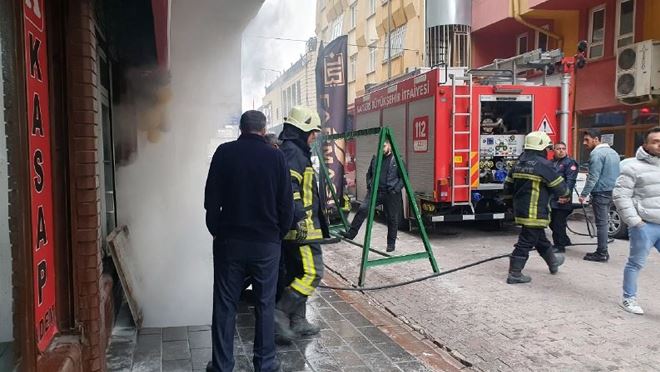 Yangın itfaiye ekipleri tarafından kontrol altına alınırken, iş yerinin deposunda maddi hasar meydana geldi.