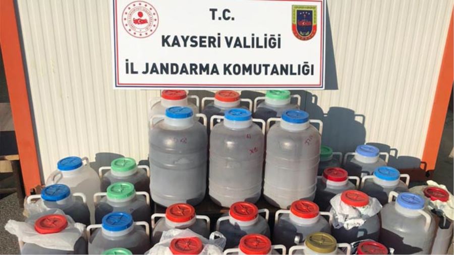 Kayseri'de jandarma ekipleri tarafından yapılan operasyonda 1 ton 62 litre kaçak el yapımı şarap ele geçirildi.