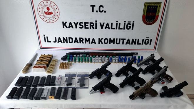 Kayseri İl Jandarma Komutanlığı ekiplerince 11 adreste düzenlenen eş zamanlı operasyonda 9 kişi yakalanırken çok sayıda silah ve mermi ele geçirildi.