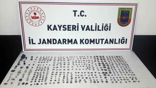 Kayseri İl Jandarma Komutanlığı ekiplerince yapılan çalışmalarda 400 adet sikke ele geçirilirken olayla ilgili 1 kişi gözaltına alındı.