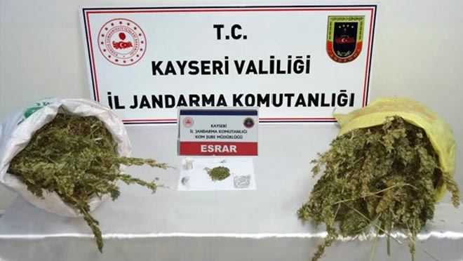Kayseri’de İl Jandarma Komutanlığı ekipleri tarafından yapılan operasyonda 20 kilo kubar esrar ve 50 gram toz esrar ele geçirildi.