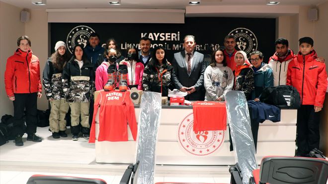 Gençlik ve Spor İl Müdürü Ali İhsan Kabakçı, kayak sporcularına malzeme desteği yapıldı.