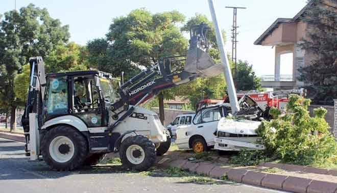Kayseri´nin Melikgazi ilçesinde meydana gelen trafik kazasında aydınlatma direğine çarparak adeta kağıt gibi katlanan otomobildeki 2 kişi yaralı olarak kurtuldu.