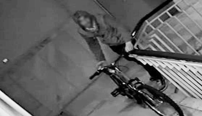 Bebek arabası ve kapının önündeki ayakkabıları çalan hırsız, bir de bina içerisinde bulunan bisikleti çalmak istedi. Bisikleti götürdüğü sırada güvenlik kamerasını fark eden hırsız, bisikleti bırakarak olay yerinden uzaklaştı. O anlar kameraya yansıdı.
