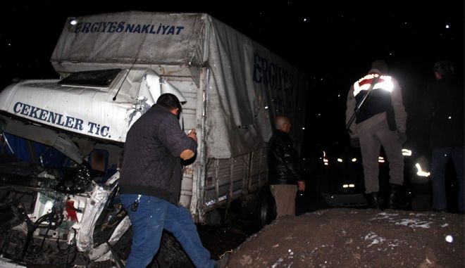Edinilen bilgiye göre, Kayseri Organize Sanayi Bölgesi çevre yolu Nevşehir-Niğde karayolu üzerinde, sürücüleri öğrenilemeyen 33 CUE 96 ve 38 PH 469 plakalı kamyonlar kafa kafaya çarpıştı. Kazanın şiddetiyle kamyonlar savrulurken, olay yerine jandarma, sağlık ve itfaiye ekipleri sevk edildi. Jandarma ekipleri trafiğe kapanan yolda güvenlik önlemi alırken itfaiye ekipleri de sürücüleri sıkıştığı yerden kurtardı. Sağlık ekipleri tarafından yapılan kontrollerde 33 CUE 96 plakalı kamyon sürücüsünün olay yerinde hayatını kaybettiği belirlenirken, diğer kamyon sürücüsü de ambulansla hastaneye kaldırılarak tedavi altına alındı.