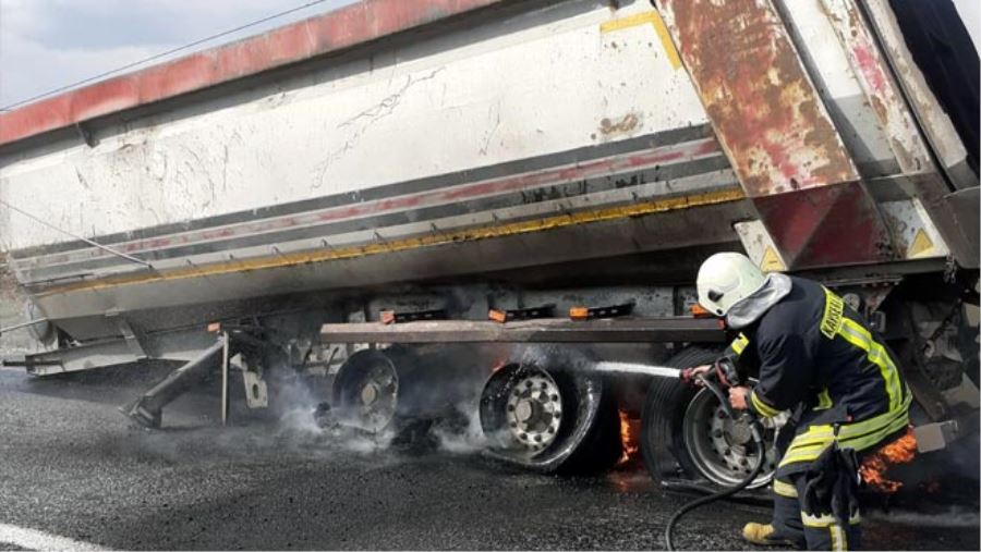 Kayseri'nin Develi ilçesine bağlı Hüseyinli Mahallesi'nde bir kamyonun dorsesinin lastikleri teknik bir arıza nedeniyle alev aldı. Alevleri fark eden kamyon sürücüsünün haber vermesi üzerine Develi İtfaiye Bölge Amirilği ekipleri olay yerine gelerek alevlere müdahale etti.