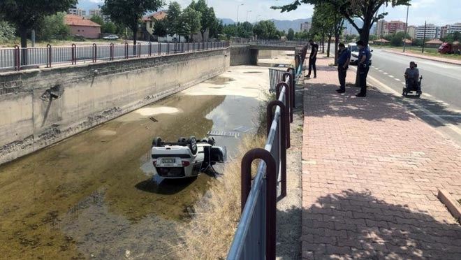 Kayseri’nin Kocasinan ilçesinde kontrolden çıkarak kanala düşen otomobilin sürücüsü yaralandı.