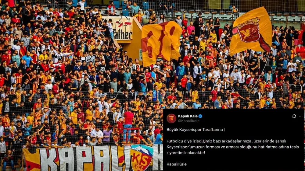 Kapalı Kale tarafından yapılan açıklamada şu ifadelere yer verildi: “Büyük Kayserispor Taraftarına | Futbolcu diye izlediğimiz bazı arkadaşlarımıza, üzerlerinde şanlı Kayserispor’umuzun forması ve arması olduğunu hatırlatma adına tesis ziyaretimiz olacaktır!”