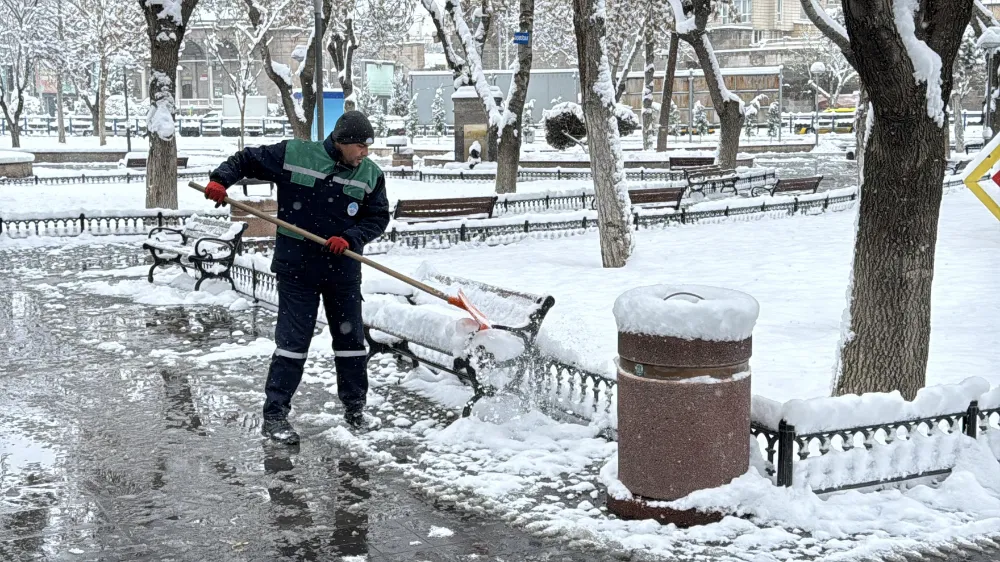 Kent merkezinde kar yağışı nedeniyle belediye ekipleri, yol açma ve temizleme çalışmalarını sürdürüyor.