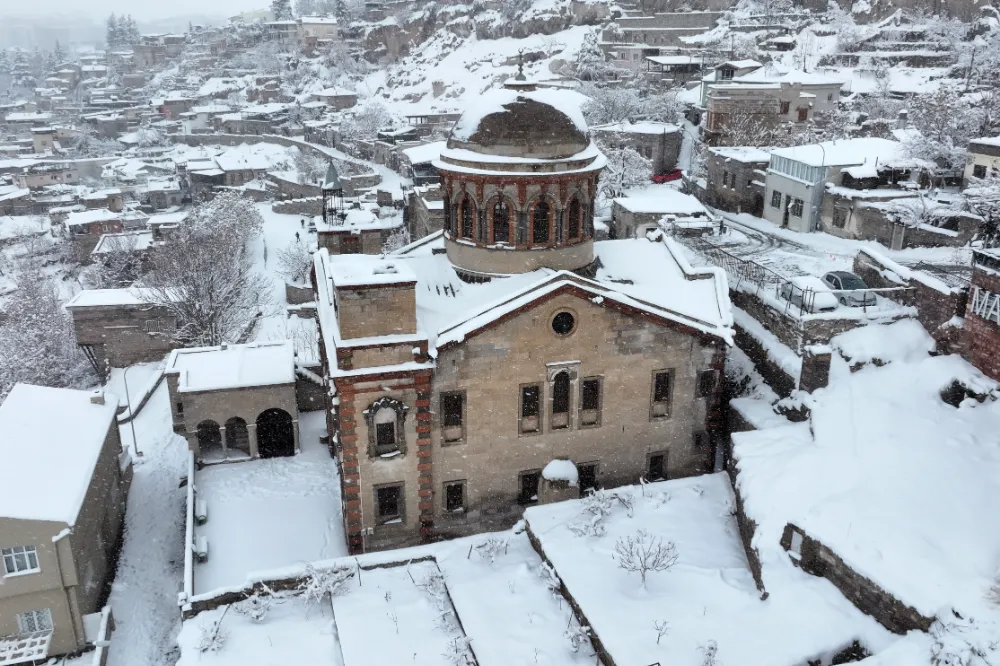 Merkez Talas ilçesinde de kar yağışının ardından tarihi mekanlar ve Yaman Dede Camisi'nde güzel görüntüler oluştu.