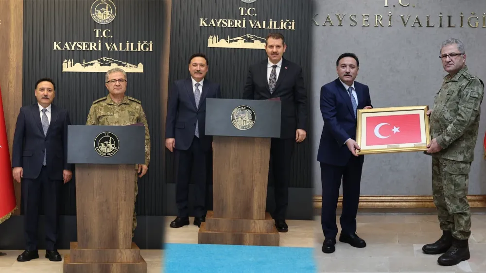 Kayseri’de bir dizi ziyaret ve incelemelerde bulunan Kara Kuvvetleri Komutanı Orgeneral Metin Tokel ile Milli Savunma Bakan Yardımcısı Salih Ayhan, Kayseri Valisi Gökmen Çiçek’i makamında ziyaret ederek bilgi aldı.