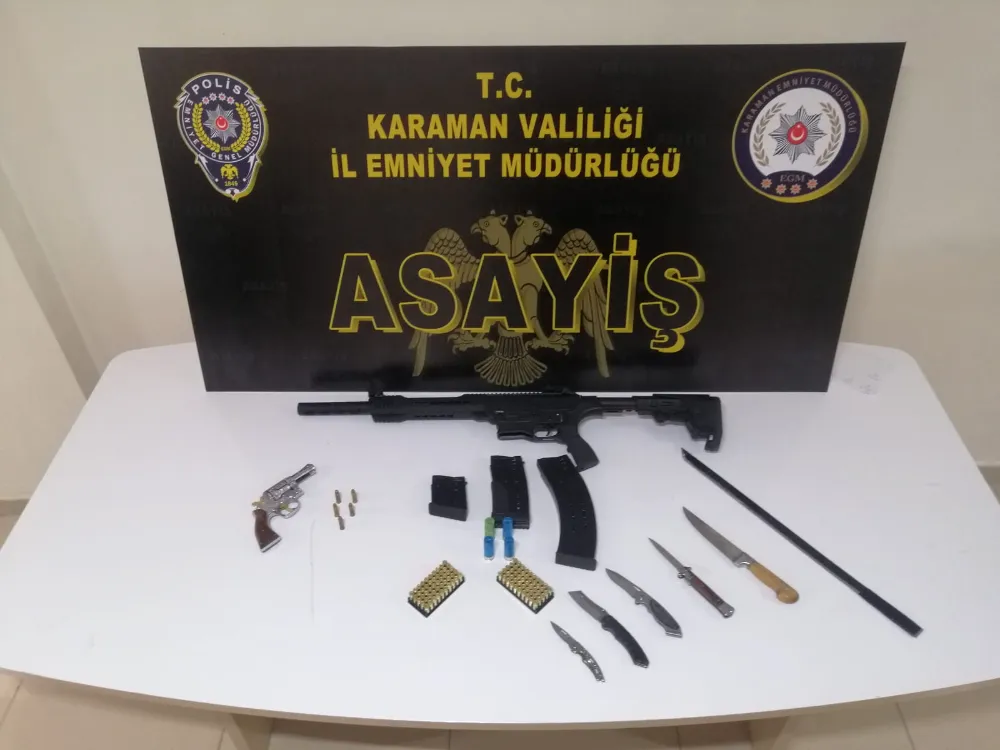 Ekipler, 1 ruhsatsız tabanca, 2 ruhsatsız tüfek, 7 kesici-delici alet ve çeşitli miktarlarda uyuşturucu madde ele geçirdi.
