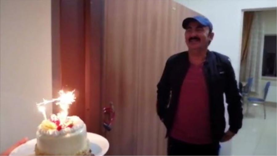Etiyopya'dan özel uçakla Kayseri'ye getirilerek Talas ilçesinde bulunan Melikgazi Yurdu'nda karantinaya alınan işçilerin arasında yer alan Recai Aydınlı, 48 yaşına girdi. Yurt görevlileri tarafından doğum günü olan Aydınlı'ya sürpriz düzenlendi. Kaldığı odanın kapısını açınca pastayı gören Recai Aydınlı, mutlu oldu.