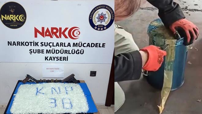 Edinilen bilgiye göre, İl Emniyet Müdürlüğü Narkotik Şube Müdürlüğü Teknik Analiz ve Sokak Suçları görevlilerince yapılan çalışmada M.K. ve C.M.'nin kargo ile kente yüklü miktarda uyuşturucu madde getirecekleri bilgisi üzerine harekete geçildi. Operasyon düzenleyen ekipler, kargo paketi içinde çöp kovasına gizlenmiş 2 kilo metamfetamin ele geçirildi. Ayrıca, gözaltına alınan şahısların evlerinde yapılan aramada ise 2 adet tabanca ve bu tabancalara ait şarjörler ile 35 adet fişek de bulunurken, kargo paketinin göndericisi de yakalandı. Ele geçirilen uyuşturucunun piyasa değerinin 500 bin TL olduğu öğrenildi. Gözaltına alınan şahıslar emniyete götürüldü.