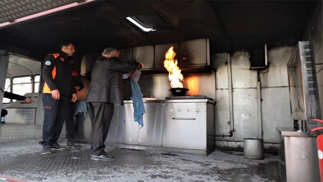 Eğitim kapsamında son olarak katılımcılara uzman ekipler tarafından yangın söndürme teknikleri, uygulamalı olarak gösterildi.