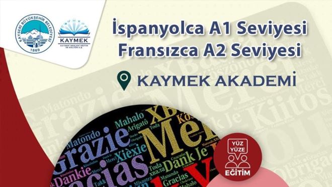 Kayseri Büyükşehir Belediyesi bünyesinde faaliyet gösteren Kayseri Mesleki Eğitim ve Kültür A.Ş. (KAYMEK), yabancı dil öğretmek ve kaliteli bir eğitim sunmak amacıyla İspanyolca ve Fransızca dersleri verecek. Buna göre KAYMEK Akademi’de yabancı dil öğrenmek isteyenler için yabancı dil kurs kayıtları başladı.