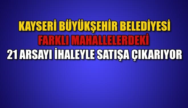 Kayseri Büyükşehir Belediyesi, farklı mahallelerdeki 21 arsayı ihaleyle satışa çıkarıyor. Arsa ihaleleri 12 Haziran Çarşamba günü yapılacak.