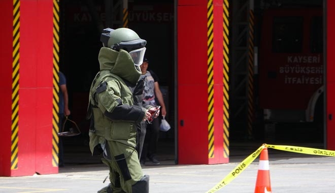 Kayseri Büyükşehir Belediyesi İtfaiyesi girişine bırakılan ve sarı bant ile sarılmış paket polis ve itfaiye ekiplerini harekete geçirdi.