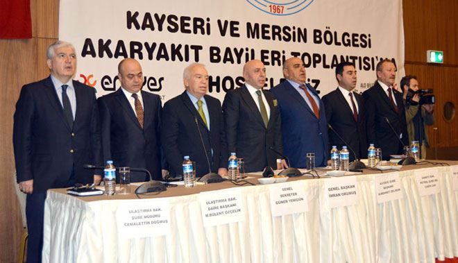 Kayseri ve Mersin Bölgesi Akaryakıt Bayileri Toplantısı ilimizin ev sahipliğinde gerçekleştirildi. Toplantıya onur konuğu olarak iştirak eden kısa adı PÜİS olan Petrol Ürünleri İşverenler Sendikası Genel Başkanı İmran Okumuş, akaryakıt bayilerine verilen kar marjının yüzde 60´ının bayilere verilmesini sağladıklarını hatırlatarak ?İdari para cezaları eşyaya değil, suç işleyene verilmelidir? değerlendirmesinde bulundu?