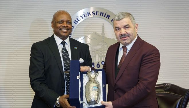 Büyükşehir Belediye Başkanı Mustafa Çelik, Ruanda Cumhuriyeti Büyükelçisi Williams Nkurunziza ile bir süre görüştü. Konuk Büyükelçiye Kayseri hakkında bilgi veren Başkan Çelik, Kayseri´nin 6 bin yıllık tarihe sahip bir şehir olduğunu söyledi. Kayseri´nin bir çok medeniyete ev sahipliği yaptığını ifade eden Başkan Çelik, ?Kayseri hep planlı gelişen bir şehir olarak hafızalarda yer almıştır. Hem ekonomik açıdan,hem de eğitim, sağlık ve turizm açısından bölgenin cazibe merkezi, bizde böyle bir şehrin belediye başkanı olmaktan dolayı mutluyuz? şeklinde konuştu. Ruanda Cumhuriyeti Büyükelçisi Williams Nkurunziza da Kayseri´ye gelmekten dolayı mutlu olduğunu ve karşılıklı ilişkileri geliştirmek istediklerini belirtti. Kayseri´ye bir arkadaşına gelmiş gibi hissettiğini söyleyen Nkurunziza, ?Kayseri endüstriyel anlamda önemli şehir ve birçok ürün üretiyorsunuz bizde ithalat yapıyoruz. Bu ithalatı ciddi anlamda geliştirmek istiyoruz. Ruanda ve Kayseri arasında birçok sektörde işbirliğimizin artacağını umut ediyorum. Vali ve Büyükşehir Belediye Başkanları şehirlerin öncüleridir.Sizlerin de bu işbirliğine yardımcı olacağınıza inanıyorum? diye konuştu.
