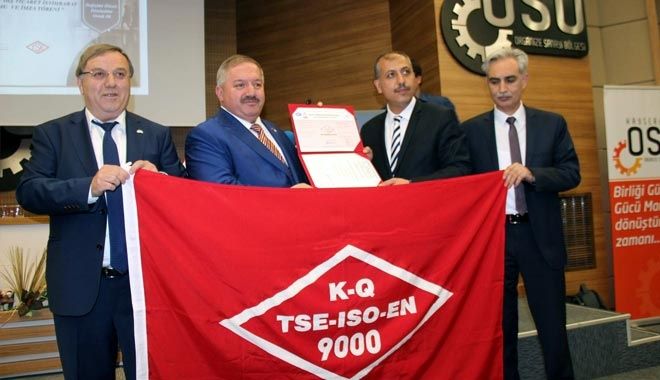 Kayseri OSB Konferans Salonu´nda Kayseri OSB Müdürlüğü ile TSE ve ORAN Kalkınma Ajansı işbirliğinde, ?Entegre Yönetim Sistemleri Sunumu ve Belgelendirme Töreni´ ile ?Dış Ticaret İstihbarat Merkezi Sunumu ve İmza Töreni´ düzenlendi. Düzenlenen programın açılış konuşmasını yapan Kayseri Organize Sanayi Bölgesi Yönetim Kurulu Başkanı Tahir Nursaçan tüm birimlerde yürütülmekte olan entegre yönetim sistemi çalışmalarını başarıyla tamamlayarak TSE´den 3 belge almaya hak kazandıklarını söyledi.