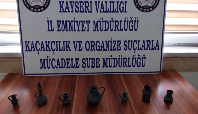 Kayseri İl Emniyet Müdürlüğü Kaçakçılık Büro Amirliğince yapılan çalışmalarda Batı Roma ve Helenistik dönemlere ait olduğu değerlendirilen 7 parça tarihi eser ele geçirilirken olayla ilgili 1 kişi gözaltına alındı.