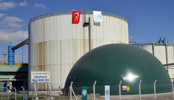 Pancar kampanyası döneminde, pancar yıkama ve proseste oluşan organik kirlilik yüküne sahip atık suların Kayseri Şeker´e ait ileri biyolojik Atıksu Arıtma Tesisi´nde arıtılması sonucu saatte yaklaşık 300-350 m3/h biyogazın depolanarak fabrika kazan sistemine entegresi sonucu yakılarak enerjiye dönüştürüldü.