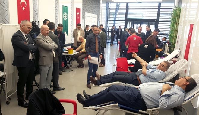 Kayseri Şeker yönetici ve çalışanları Zeytin Dalı Harekatı´na destek vermek amacıyla 15 Temmuz Şehitleri Konferans salonunda Türk Kızılayı´na kan bağışı yaptılar.