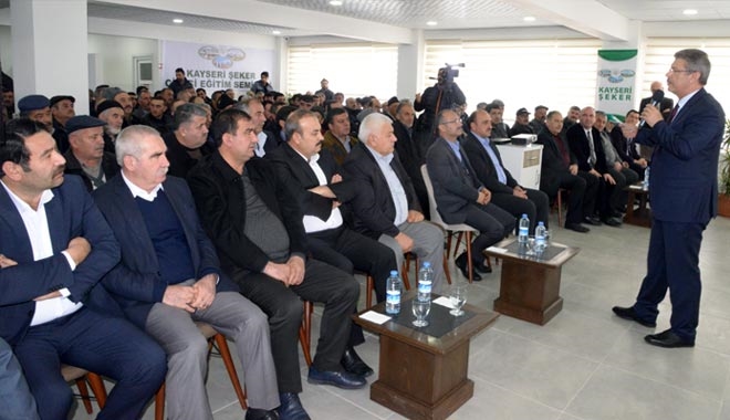 Çamlıbel çiftçi eğitim seminerinde konuşan Kayseri Pancar Kooperatifi Yönetim Kurulu Başkanı Hüseyin Akay; Çamlıbel çiftçileri olarak çiftçi eğitim seminerine göstermiş olduğunuz katılımdan dolayı şükranlarını sunarak ? Bu toplantıların amacı çiftçileri bilgilendirmektir. Bu eğitim çalışmalarını bahar aylarına girmeden, ekim faaliyeti başlamadan önce bütün bölgelerimizde 8 yıldan beri yapmaktayız. Bu eğitimlerden çiftçimizin faydalandığını gördüğümüz gibi bizler de faydasını görmekteyiz. Bu sayede çiftçilerimiz üretim, başarı ve verimlilik konusunda önemli gelişmeler kaydettiler. Sizlerin de yakın ilginiz ve meseleye sahiplenmeniz sonucunda kısa bir süre içerisinde Kayseri ve Boğazlıyan Şeker fabrikaları ile sözleşmeli pancar ekimi yapan çiftçilerin yakalamış olduğu gelişmeleri burada elde etmeyi ümit ediyoruz? şeklinde konuştu?