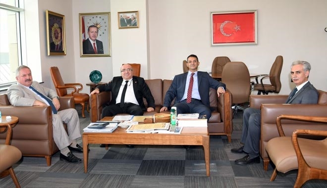Kayseri Üniversitesi Rektörü Prof. Dr. Kurtuluş Karamustafa, Organize Sanayi Bölgesi Yönetim Kurulu Başkanı Tahir Nursaçan´a iade-i ziyarette bulundu.