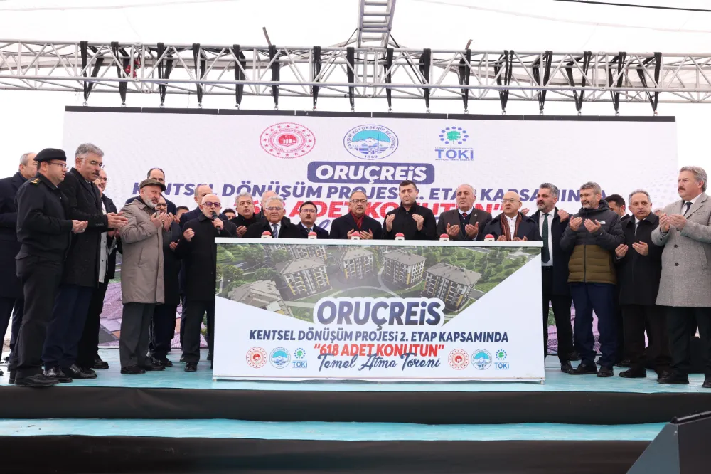 Büyükşehir Belediyesi ve TOKİ işbirliği ile Oruçreis Mahallesi Keresteciler Sitesi Yanı’nda yapılacak olan Oruçreis Kentsel Dönüşüm Projesi 2’nci Etap kapsamında 618 Adet Konutun Temel Atma Töreni’ne Çevre, Şehircilik ve İklim Değişikliği Bakanı Mehmet Özhaseki, Kayseri Valisi Gökmen Çiçek, AK Parti Kayseri Milletvekilleri Murat Cahid Cıngı, Bayar Özsoy, MHP Kayseri Milletvekili Baki Ersoy, Kayseri Büyükşehir Belediye Başkanı Dr. Memduh Büyükkılıç, TOKİ Başkanı Ömer Bulut, AK Parti Kayseri İl Başkanı Fatih Üzüm ve ilçe belediye başkanları ve vatandaşlar katıldı.
