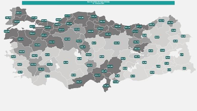 13-19 Kasım tarihleri arasında vaka sayısı en düşük molan iller ise Batman, Hakkari, Şırnak olarak kayıtlara geçti.
