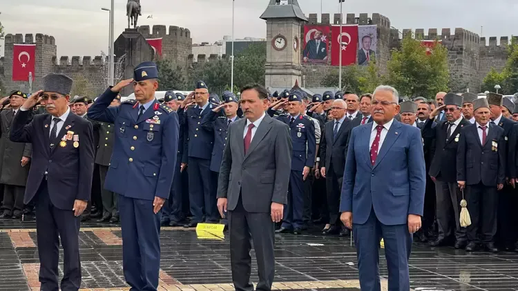 Cumhuriyet Meydanı'ndaki törende Vali Gökmen Çiçek, Büyükşehir Belediye Başkanı Memduh Büyükkılıç, Garnizon Komutanı Tümgeneral Kadircan Kottaş ve Türkiye Muharip Gaziler Derneği Kayseri Şube Başkanı Osman Balcı tarafından Atatürk Anıtı'na çelenk sunuldu.