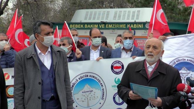 “Biz Kayseri gönüllü kültür kuruluşları Derneği olarak, 104 emekli Amiral adına yayınlanan millet iradesini temsil eden siyasi iradeye tehdit niteliğindeki bildiriyi şiddetle kınıyoruz. Ülke idaresinin milletin seçtiği siyasi iradenin uhdesinde olduğunu hatırlatıyor, buna karşı çıkan her teşebbüsün, geçmişten bugüne olduğu gibi her daim karşısında olacağımızı, kamuoyuna İlan ediyoruz.”