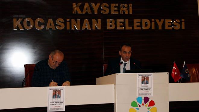 Adnan Evsen'in moderatörlüğünü yaptığı Kayseri Küçük Millet Meclisinin konuğu Ziraat Mühendisleri Odası Başkanı Koç oldu. Tarım Politikaları ve Arz Güvenliği konusunun tartışıldığı programda konuşan Koç; "Ülke tarımını birçok faktör etkilemekte. Dünyada yaşanan ekonomik dönüşümler, özelleştirmeler, yerel ekonomik koşullar, yanlış politikalar, oluşan fiyat dalgalanmaları, arz talep dengesizliği gibi faktörler tarım üzerinde etkendir. Çözüm olarak sunuluyor gibi gözüken ithalat ve tanzim satış gibi işlemler hem problemin temeline inmemekte hem de kalıcı bir iyileşme sağlamamaktadır. Ekonomik büyüme ve kalkınma açısından taşıdığı stratejik önem nedeniyle her ülkede tarım devlet tarafından desteklenir. Ülkemizde milli gelir ve istihdama katkı, sanayi sektörünün hammadde ihtiyacını karşılama, ihracata katkısı gibi nedenlerle tarım vazgeçilmez bir sektördür. Türkiye coğrafyası iklim çeşidinin sağladığı avantajla çok fazla ürünün yetiştirilebildiği eşsiz bir bölgedir. Cumhuriyetin ilk yıllarından günümüze kadar çoğunlukla kendine yeten hatta yakın coğrafyasını besleyebilen bir ülke iken küresel ısınma faktörü, kırılgan ekonomik yapımız nedeniyle şuan kendine yeten özelliğimizi kaybetme durumuyla karşı karşıyayız. Ülkemizde tarım politikaları ile pazar fiyatı destekleri yanı sıra üreticilere doğrudan nakdi destek ve kredi verilmesi gibi yöntemlerle tedbir olarak sektörü güçlendirmeye çalışılsa da ihtiyacı karşılamamaktadır" dedi.