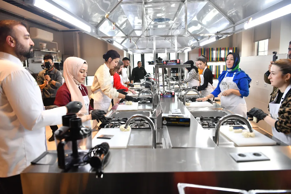 Başkan Büyükkılıç; Milli Eğitim Bakanlığı’na bağlı özel bir eğitim kurumu olan Kayseri Mutfak Akademisi’nin, 2026 yılı Şubat ayında kapılarını açarak, yiyecek-içecek sektörüne eğitimli ve profesyonel işgücü kazandırma misyonu ile faaliyete gireceğinin müjdesini vererek, "Milli Eğitimimizden almış olduğumuz yetkiyle birlikte şef yetiştirme, aşçı yetiştirme anlamında sertifikalandırma amacıyla çalışmalarımızı da başlatmış bulunuyoruz. Tabii gastronomi konusu dünyada ve ülkemizde herkesin ilgiyle izlediği ve bu alanda yetkili olmak istediği bir boyut kazanmaya başladı. Kayseri, 6 bin yıllık geçmişiyle, değişik medeniyetlere ev sahipliği yapmanın zenginliğiyle mutfak çeşitliliği de çok fazla olan bir şehir. Kayseri’mizin 200 civarında ürününün söz konusu olduğunu biliyoruz. Mutfak Sanatları Merkezi’mizi açarken atölyelerimizin olduğunu, kurslar vereceğimizi ifade etmiştik. 4 aylık bir eğitim sürecini gündemimize alıyoruz. Yetkimiz dâhilinde burada 256 saatlik bir eğitim ile buradan yetişecek aşçılarımızın donanımlı hale gelmesini sağlamış oluyoruz" şeklinde konuştu. Kayseri Mutfak Akademisi’nde iki alanda eğitim verileceğini ifade eden Büyükkılıç, "İkisine de ayrı ayrı öğrenciler alınacak. Tabi ki bu eğitim için hem setlerimizi vereceğiz hem malzemelerimizi sağlayacağız. Amacımız Kayseri’mizi hep olumlu paylaşıma vesile kılmak. Bu alanda emeği geçen birimimizi ve ekibimizi tebrik ediyorum. Yoğun bir talebin olduğunu da biliyorum. İşimizi profesyonelce yapacağız" diye konuştu. Başkan Büyükkılıç, eğitimlere katılacak olanlara başarı dileklerini ileterek, eğitimlere dair duyurunun Ocak ayında yapılacağını ve Şubat ayında da eğitimlerin başlayacağını söyledi. Büyükkılıç, şef eşliğinde uygulamalı Lahmacun Workshop etkinliği hakkında da değerlendirmelerde bulunarak, "Şuanda bu işin uzmanı olan dostlarla beraberiz, Antep lahmacunu yapacaklar. Şimdiden ustalarımıza başarılar diliyorum" dedi. Daha sonra Şef eşliğinde uygulamalı Lahmacun Workshop etkinliğinde katılımcılar, şeflerin anlatımıyla tüm püf noktalarını öğrenerek Gaziantep’in meşhur lezzetlerinden lahmacun yaptılar.