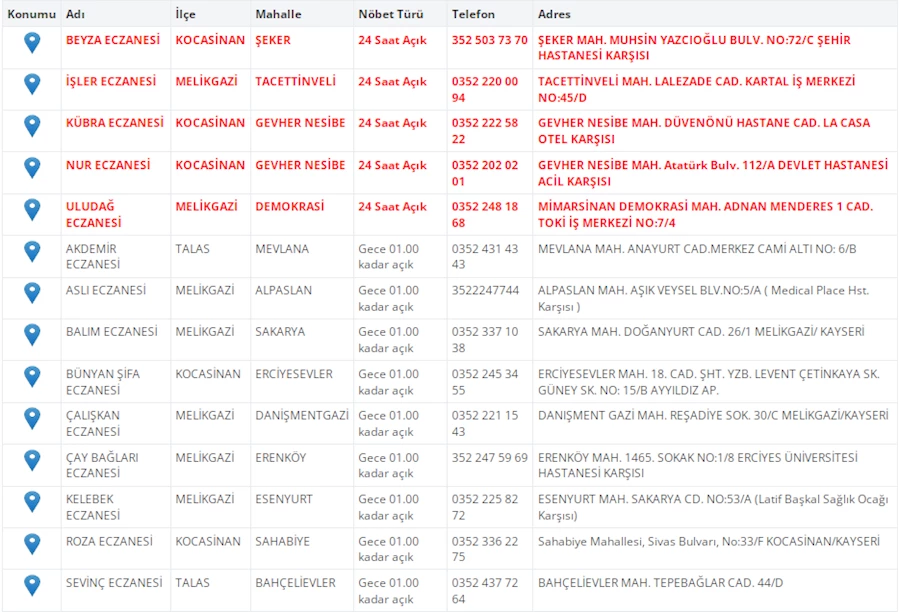 Kayseri'de vatandaşların acil sağlık ihtiyaçları için nöbetçi eczaneler önemli bir yere sahip. Kayseri’nin bugünkü nöbetçi eczanelerini sizler için derledik. 10 Şubat Pazartesi nöbetçi eczaneler listesine buradan ulaşabilirsiniz. İşte 10 Şubat nöbetçi eczaneler…