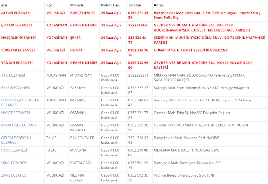 Kayseri'de bugünkü nöbetçi eczaneleri sizler için derledik. 5 Aralık 2025 Cuma nöbetçi eczaneler listesine haberimizden ulaşabilirsiniz. İşte Kayseri'deki nöbetçi eczaneler, Kayseri Haber Gazetesi'nin haberlerinde...