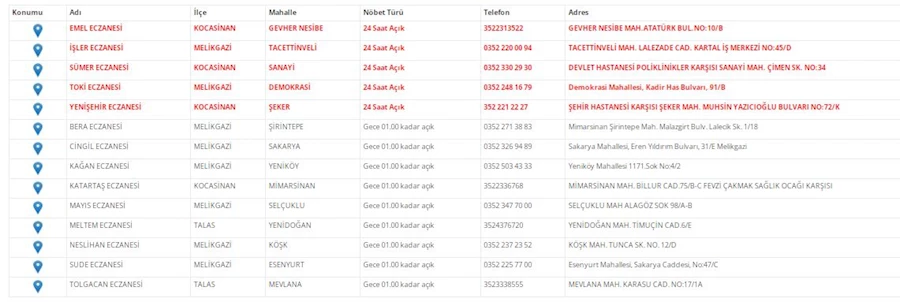 Kayseri'de vatandaşların acil sağlık ihtiyaçları için nöbetçi eczaneler önemli bir yere sahip. Kayseri’nin bugünkü nöbetçi eczanelerini sizler için derledik. 14 Eylül Pazar nöbetçi eczaneler listesine buradan ulaşabilirsiniz. İşte 14 Eylül nöbetçi eczaneler…