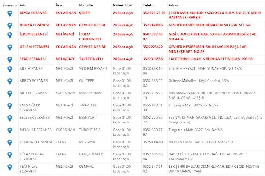Kayseri'de vatandaşların acil sağlık ihtiyaçları için nöbetçi eczaneler önemli bir yere sahip. Kayseri’nin bugünkü nöbetçi eczanelerini sizler için derledik. 14 Nisan Pazartesi nöbetçi eczaneler listesine buradan ulaşabilirsiniz. İşte 14 Nisan nöbetçi eczaneler…