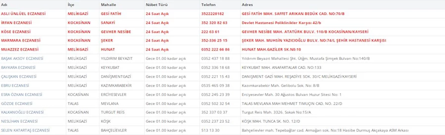 Kayseri'de vatandaşların acil sağlık ihtiyaçları için nöbetçi eczaneler önemli bir yere sahip. Kayseri’nin bugünkü nöbetçi eczanelerini sizler için derledik. 15 Aralık Pazarnöbetçi eczaneler listesine buradan ulaşabilirsiniz. İşte 15 Aralık nöbetçi eczaneler…