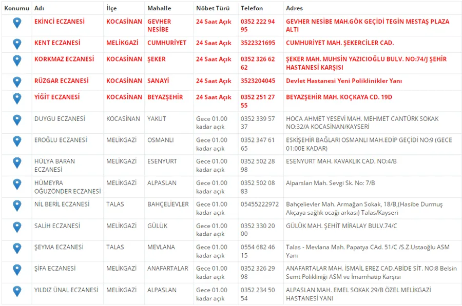 Kayseri'de vatandaşların acil sağlık ihtiyaçları için nöbetçi eczaneler önemli bir yere sahip. Kayseri’nin bugünkü nöbetçi eczanelerini sizler için derledik. 16 Kasım Pazar nöbetçi eczaneler listesine buradan ulaşabilirsiniz. İşte 16 Kasım nöbetçi eczaneler…